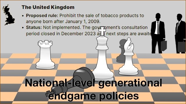 Wereldwijd beginnen de meeste mensen voor hun twintigste met roken. Maatregelen die voorkomen dat jonge mensen gaan roken, kunnen daarom ‘een significante impact’ hebben op het verminderen van tabaksgebruik, stelt STOP, de internationale antitabaksgroep die de handel en wandel van de industrie blootlegt. Tot die maatregelen behoren ook de ‘generationele eindspelstrategiëen’: het verbieden van tabaksverkoop aan personen die geboren zijn na een bepaald jaar. Met deze aanpak kunnen overheden een ‘tabaksvrije generatie’ creëren, aldus STOP.